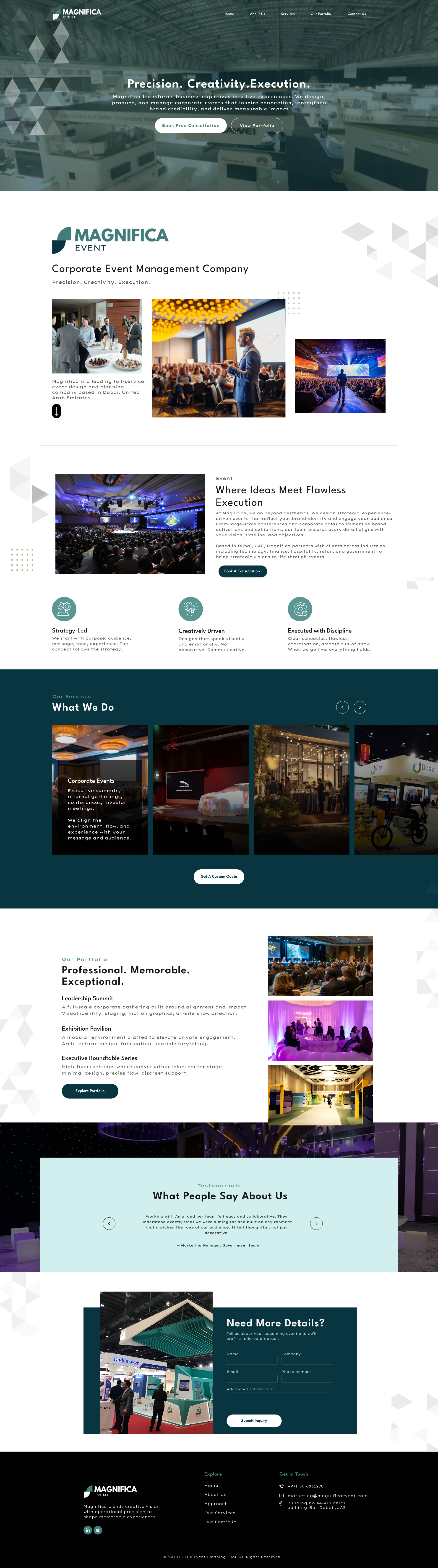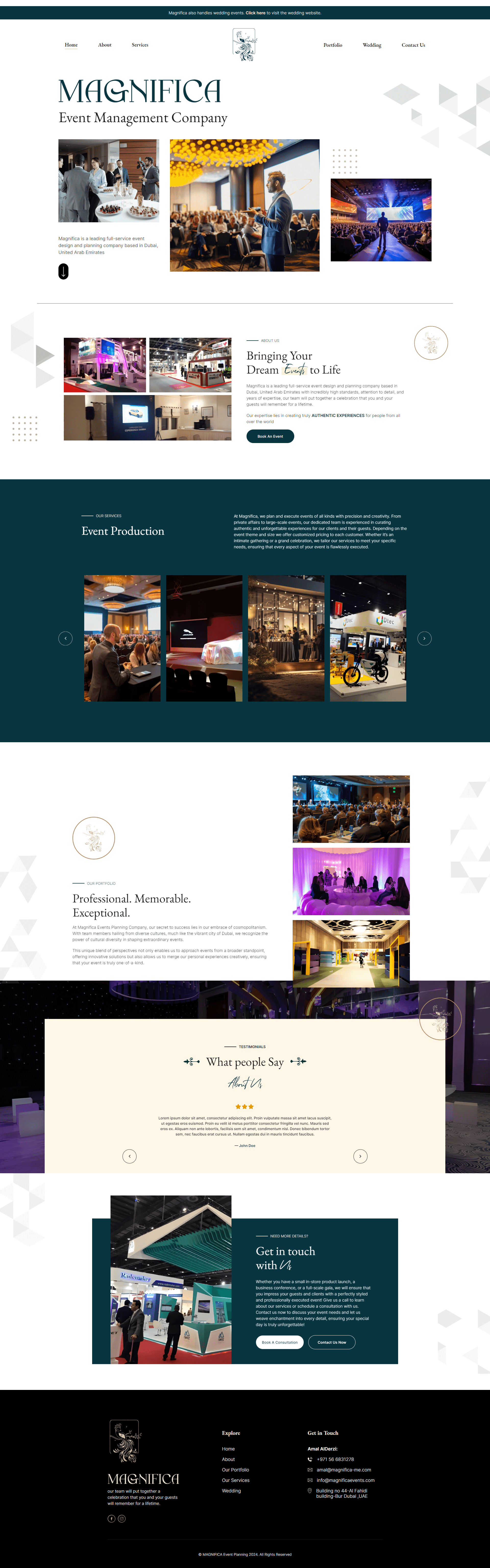 "Designed and developed the Magnifica Event website on WordPress, creating a visually appealing and user-friendly platform that highlights their event planning services. The project involved custom theme design, responsive development, and seamless functionality for an engaging user experience."