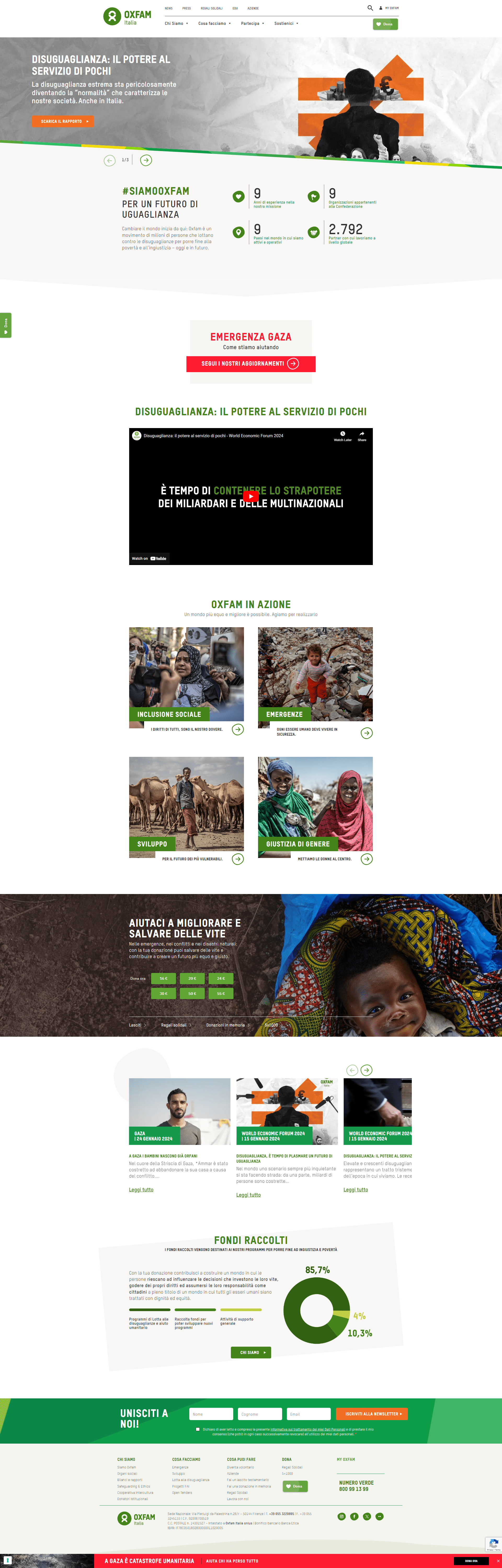 Developed the Oxfam Italia website with a custom solution tailored to their needs using WordPress. The project involved building a fully custom theme and integrating Advanced Custom Fields (ACF) for flexible content management. We also implemented WooCommerce to support their e-commerce functionality, ensuring smooth donation and product purchase processes. The result is a highly functional, user-friendly platform that allows Oxfam Italia to effectively manage and showcase their initiatives while providing a seamless experience for their users.